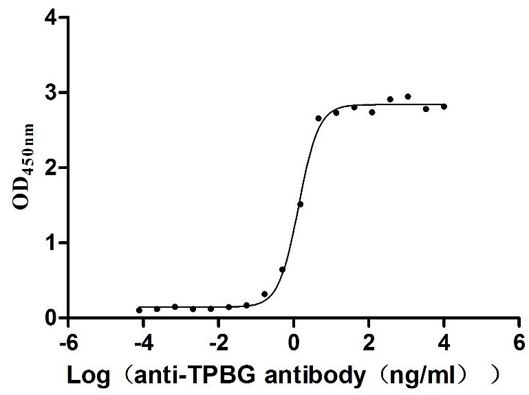 Measured by its binding ability in a functional ELISA. Immobilized Human TPBG at 2 μg/mL can bind Anti-TPBG recombinant antibody (CSB-RA024093MA1HU), the EC50 is 1.230-1.519 ng/mL.